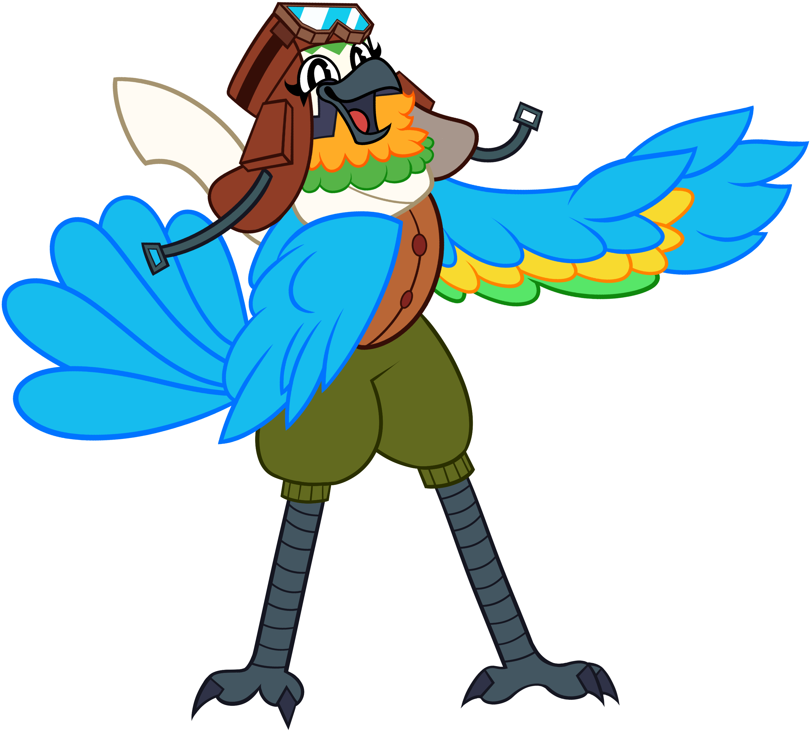 Oh look! It’s Mollie Macaw, the greatest pilot you ever saw! This aviator parrot loves to take to the skies in planes of her own creation! We all know she’s qualified… but her crashing habit isn’t helping her case. A fun-loving, brash, and loyal bird who would do anything to protect her friends! Meet Mollie today, only at Indigo Park in [REDACTED].